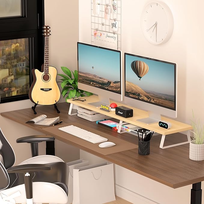 - Monitor Stand With Storage: Optimize your workstation with our versatile monitor stand riser. It offers a convenient workspace beneath your monitor for storing your keyboard ⌨️ and accessories 📝. Additionally, it doubles as a TV stand, printer stand, laptop riser, or even a desk shelf. 📟. Maximize space and efficiency in just one product