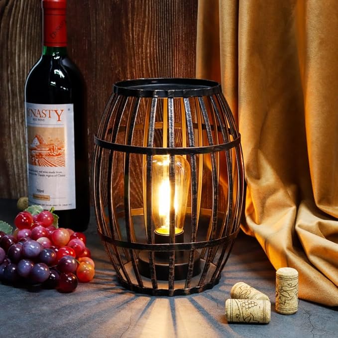 - 【UNIVERSAL SIZE FOR MOST OCCASIONS 】- 6"L x 6"W x 8"H. This uniquely designed wine barrel battery lamp, you can place it on the restaurant table to add another atmosphere to your meal time. In addition, it can also be placed in your living room, bedroom, study or office, bringing warm and fantastic lighting to each space.