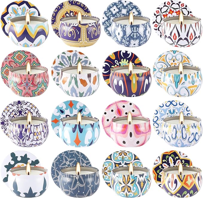 - Scented Candles: This scented candle gift set offers 16 delicately clean and uplifting aromas, including Blue Bell, Peony Cherry Blossom, Guava, Lavender, Bonfires, Jasmine, Lemon, Vanilla, Gardenia, French Blackberry, Strawberry, Spring, Cinnamon, Chamomile, Fig, Peppermint.