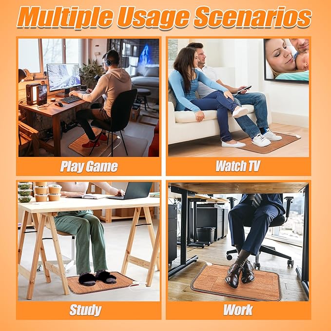 - Support Wearing Shoes or Socks: Our heated floor mat has super heating performance, once it starts to work, it will generate enough heat. You can use it without taking off your shoes to keep your feet warm and comfortable.