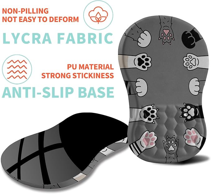 Ergonomic Mouse Pad Wrist Support with Memory Foam Massage Bulge, Carpal Tunnel Pain Relief Mousepad Wrist Rest for Mouse(12x8 inch, Paw)