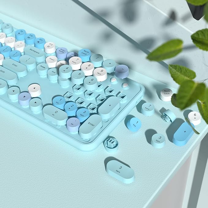 - Retro Round Keyboard:The wireless keyboard features retro typewriter-style round key-caps, 104 keys full-size with numpad, and 12 multimedia hotkeys combined with the FN key to optimize your work and study efficiency