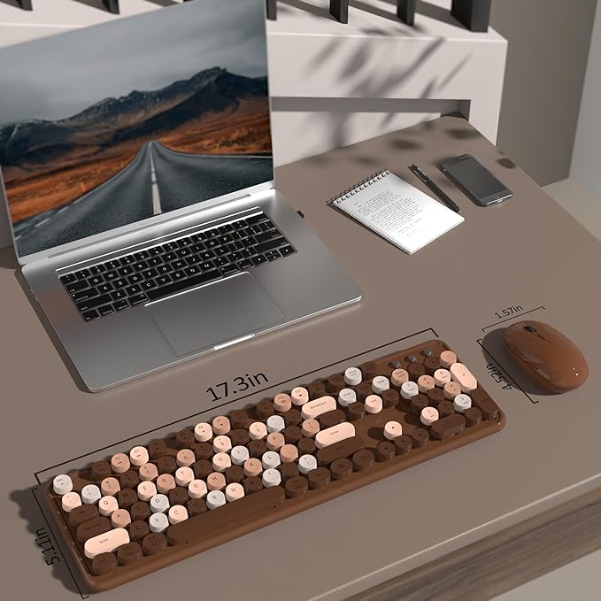 - Retro Round Keyboard:The wireless keyboard features retro typewriter-style round key-caps, 104 keys full-size with numpad, and 12 multimedia hotkeys combined with the FN key to optimize your work and study efficiency