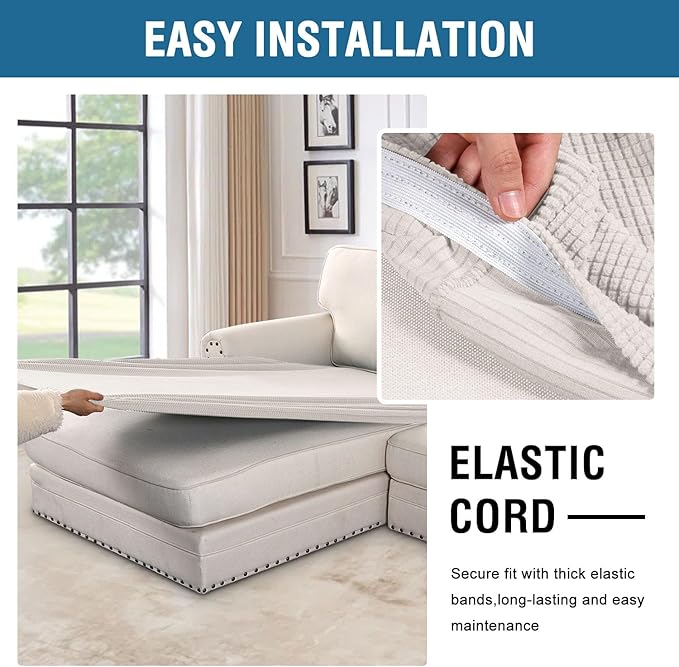 - NON SLIP: Effortless for installation (guide photos on selling page), sewn with thick elastic loops to cover the bottom edges. It is easy to install and take off, making your home more harmony, high recommended for both leather and cloth furniture