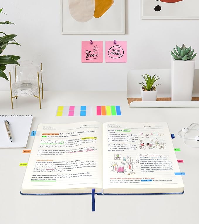 - 【180°Lay Flat Journal Notebook】The 180° lay flat design makes writing easier, reading more convenient, and taking notes more efficient.At the same time, the hardcover notebook is designed with1 elastic closure band & 1 elastic bookmark band. to make it tightly closed to protect your content, and the inner paper will not be curled and kept flat.