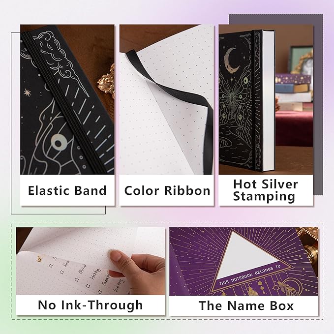 - ☽THOUGHTFULLY NUMBERED AND ORGANIZED: Stay organized effortlessly with our 256 numbered paper journal. The user-friendly notebook comes equipped with page numbers, ribbon bookmarks, and elasticated straps, making it easy to locate important notes and thoughts quickly. With 256 pages, this notebook offers ample space to document your journey throughout the year.