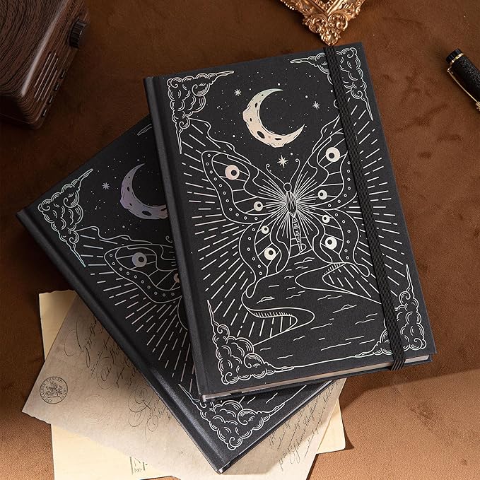 - ☽EXQUISITE MOON AND BUTTERFLY DESIGN: Adorned with an enchanting moon and butterfly design on the front and back, our hardcover journal features delicate foil stamping. The notebook also boasts sprayed gold edge detailing on the title page and inside side pages, adding an extra touch of elegance to your writing experience.