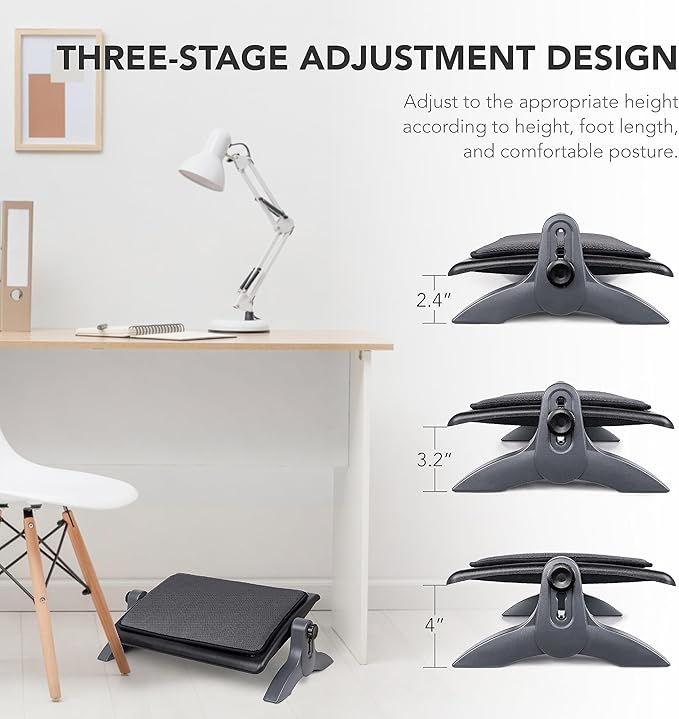 - 【Non-Slip Stability】Anti-slip rubber feet keep the footrest steady on wood, tile & carpet—no sliding, no wobbling.