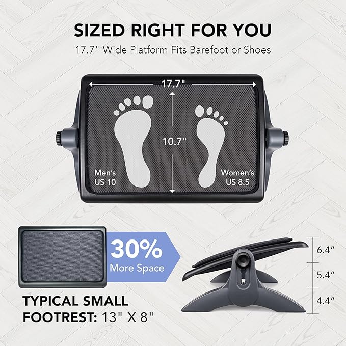 - 【Extra-Wide Platform】Generous 17.7” x 12.2” surface fits all foot sizes—comfortable with or without shoes.