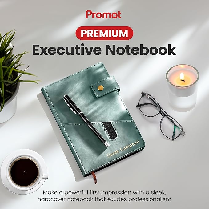 Promot Personalized Notebook - A5 Lined Leather Bound Journal for Writing Women Men - Hardcover Executive Notebook, Daily Journal, Travel Diary, Gift Idea, Custom Embossed Text with Gold Metallic Foil