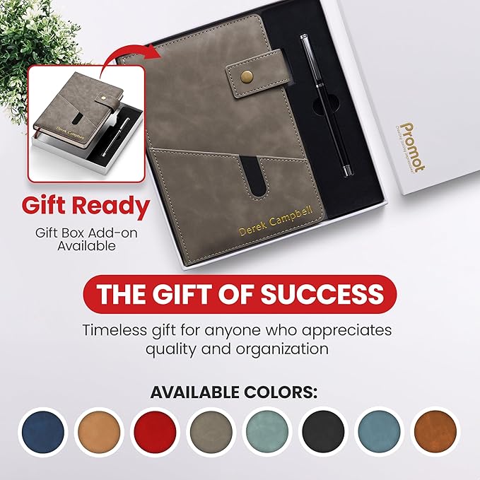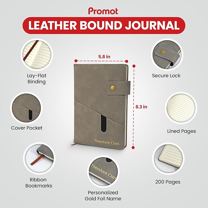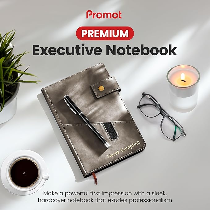 Promot Personalized Notebook - A5 Lined Leather Bound Journal for Writing Women Men - Hardcover Executive Notebook, Daily Journal, Travel Diary, Gift Idea, Custom Embossed Text with Gold Metallic Foil
