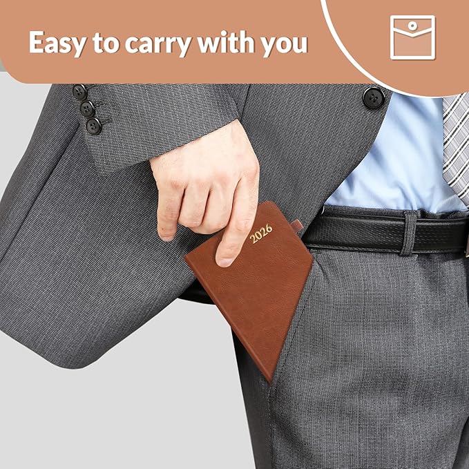 SUNEE 2026 Pocket Weekly Planner for Purse 3.5" x 6" - 12 Month (January 2026 - December 2026), Small Size Planner, Hardcover, Note, Brown