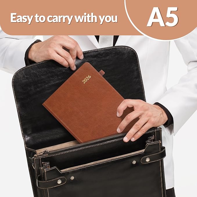 SUNEE 2026 Weekly & Monthly Hardcover Planner 5.5" x 8.3" - 12 Month (January 2026 - December 2026), Small Hardcover Planner, Pocket, Notes, 100 GSM Paper, Brown