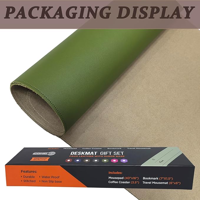 PU Leather Desk Mat| Premium Mouse Pad with Bonus Coaster | Stylish, Durable, Waterproof Mouse Pad for Office & Home (Green, XXL - PU Gift Set)