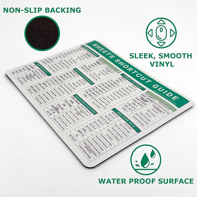 - LEARN AS YOU GO:Whether you're a beginner or aiming to level up your GoogleSheets skills, our mouse pad serves as a valuable learning tool. Each shortcut is clearly labeled, so you can use it as a reference while gradually committing them to memory. Master Sheets in no time!