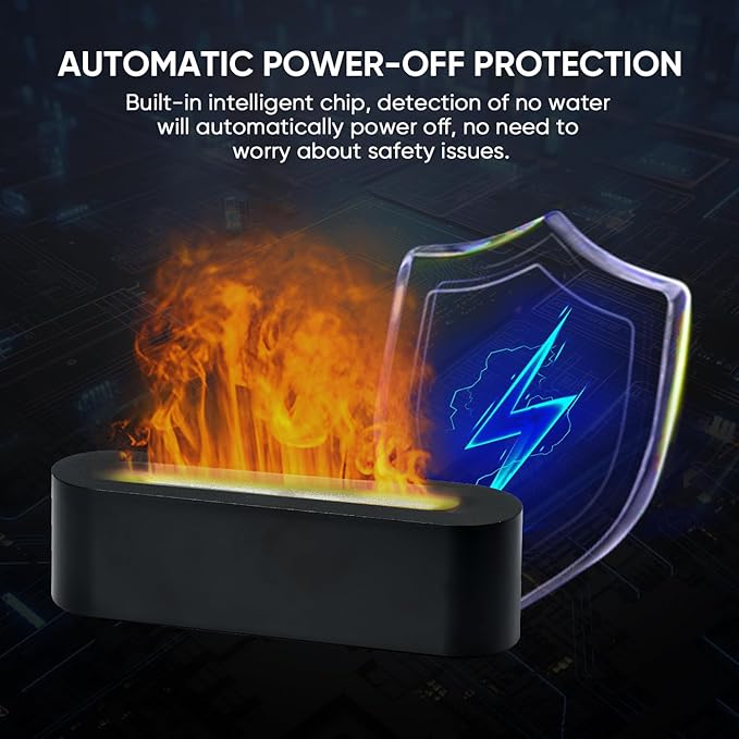 - 【Fireplace Shape & Flame Light】-Using a minimalist & small footprint & upscale fireplace design, and with the ambient flame lighting so that the mist is like a real flame, the whole humidifier is like a burning fireplace.It is not only a diffuser, can also be an ornament or night light. Suitable for bedroom, office, home, yoga, gaming, etc.It provides your life with a premium feeling and enhances the quality of life.