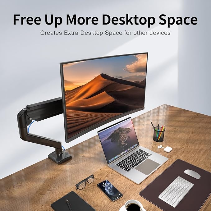 suptek Single Monitor Arm Mount for 13-32 inch, Adjustable Gas Spring Monitor Arm Desk Mount Stand for 4.4-19.8lbs, with VESA Mount 75x75/100x100mm