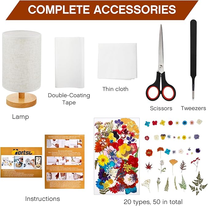 Hortsun Pressed Floral Lamp Bedside Vintage Flower Desk Lamp for Bedroom Living Room, Dorm, Home, Office Decor(1 Pcs,DIY Style)