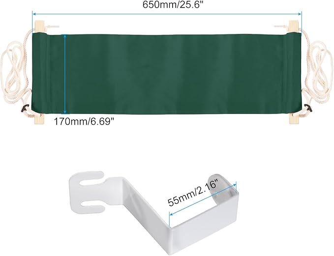 - Color: Dark Green; Material: Polyester Cotton; Size: 650 x 170mm / 25.6 x 6.69 inch(L*W); Packing List: 1 x Foot Hammock Airplane, 2 x Hanging Hooks