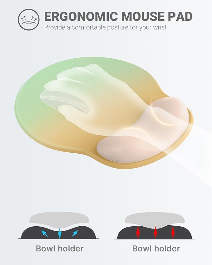 - 【Ergonomic Mouse Pad】Comfortable gel wrist pad partially supports the wrist to give support, not easy to deform, reduce pain and prevent carpal tunnel syndrome. And can be used for all types of mice, wired, wireless, mechanical, laser and optical.
