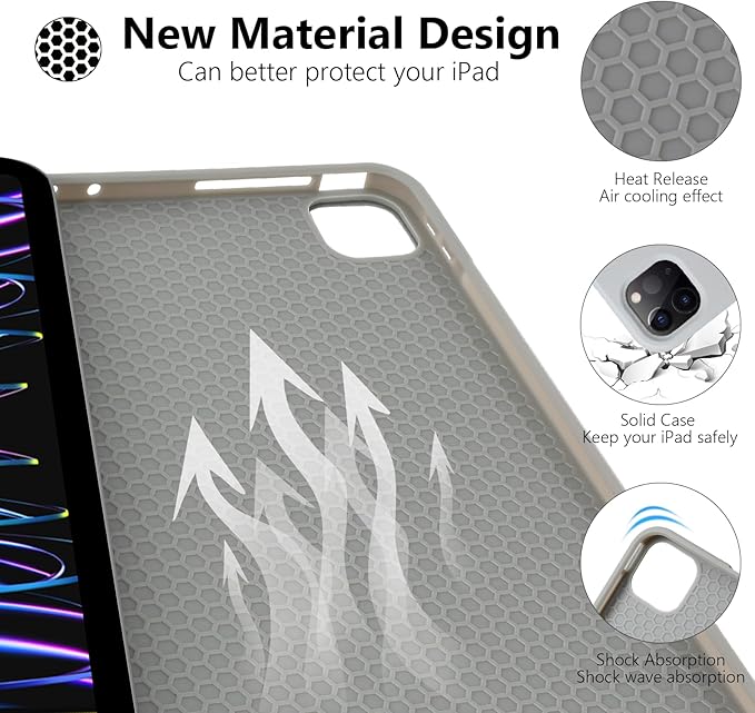 - Heat release & for iPads whole body protection: IPads pro 12.9 inch case with keyboard comes with honeycomb grid pattern design is better for heat release and anti-skid.Thoughtful design to effectively extend life of your beloved iPads.Solid keyboard case and wave shock absorbtion give comprehensive protection for your IPads Pro 12.9 Case 6th/5th Generation & for iPads air 13 inch from scratches and damage.
