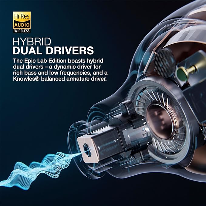 - π HYBRID DUAL DRIVERS: The Epic Lab Edition boasts hybrid dual drivers β a dynamic driver for rich bass and low frequencies, and a Knowles balanced armature driver for exquisite high frequencies. This fusion of drivers results in unparalleled, well-balanced, and crystal-clear sound quality.