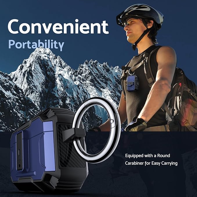 - 【Convenient Charging & Portability】The case supports both wired and wireless charging for your AirPods Pro case. The front LED remains visible to show the charging status. An included portable carabiner allows you to conveniently take your AirPods Pro case with you during outdoor activities like climbing, hiking, and travelling.