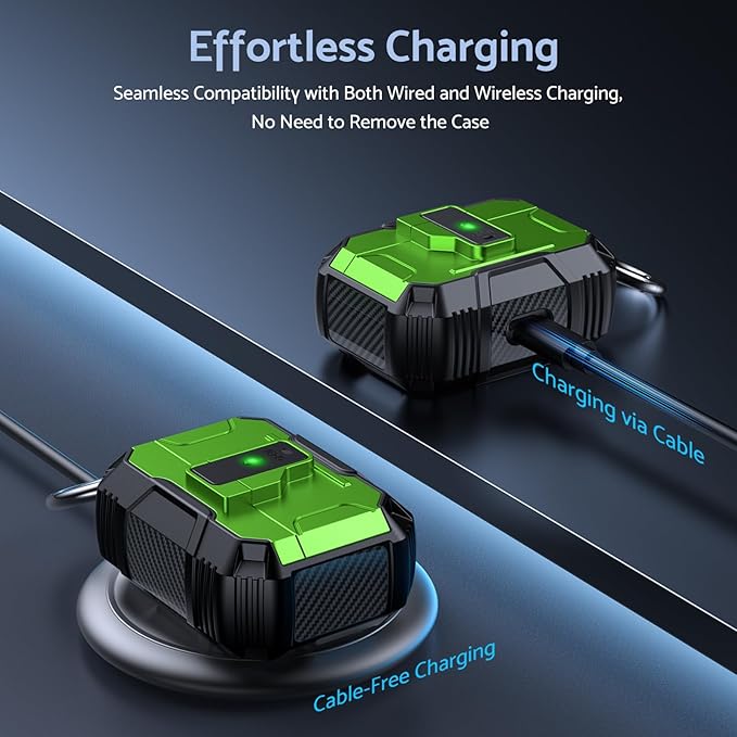 - 【Convenient Charging & Portability】The case supports both wired and wireless charging for your AirPods Pro case. The front LED remains visible to show the charging status. An included portable carabiner allows you to conveniently take your AirPods Pro case with you during outdoor activities like climbing, hiking, and travelling.