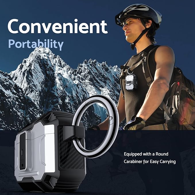 - 【Convenient Charging & Portability】The case supports both wired and wireless charging for your AirPods 3 case. The front LED remains visible to show the charging status. An included portable carabiner allows you to conveniently take your AirPods 3 case with you during outdoor activities like climbing, hiking, and travelling.