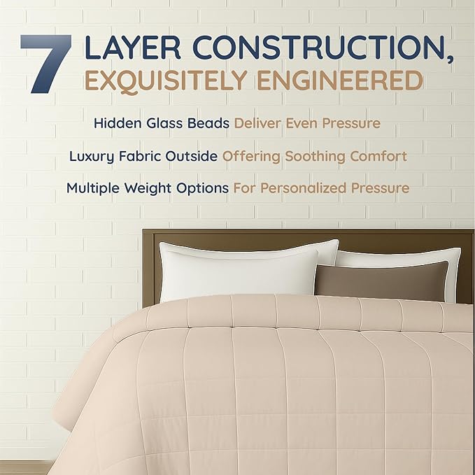 HomeSmart King Size Weighted Blanket 20lbs, Oversized Heavy Blanket for Adults, 104x92, Light Khaki