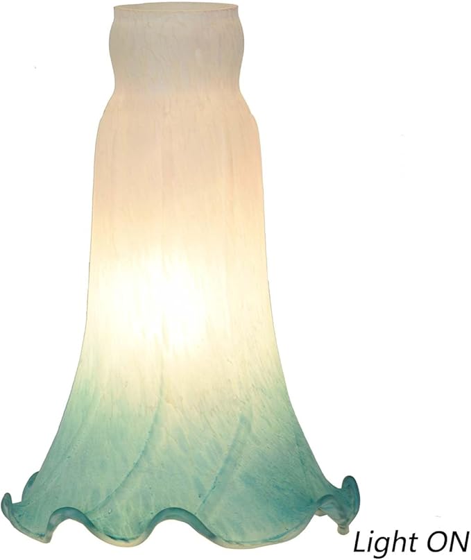Bieye LS08 Lily Flower Blown Glass Lampshade (White Cyan, Opening I.D. 1.26" x O.D. 1.5")