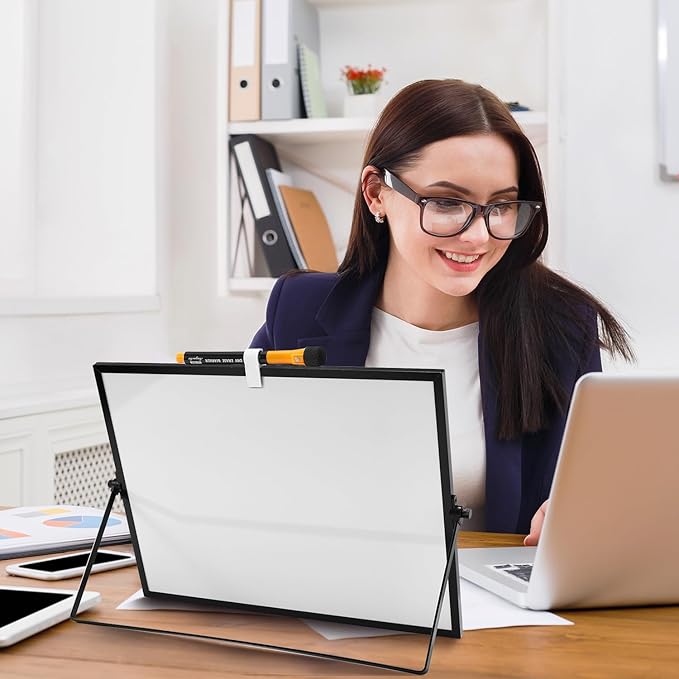 - SMOOTH SURFACE AND ANTI-SCRAP: Our desktop white board small offers a super smooth coating surface for easy writing with included 8 colors markers, wiped it clean and no ghost leave with all dry erasers
