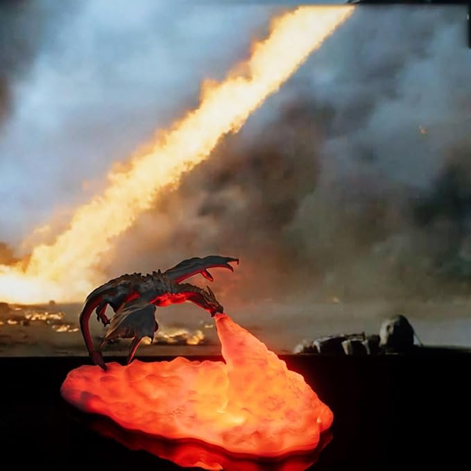 - 【Unique Dragon Design】: The dragon lamp light is made of 3D printing technology with realistic dragon shape. When the light is on, it looks like a dragon flying and breathing fire, delicate and eye-catching.Gradient Brightness: This 3D dragon light has a flame color light, look closely at the light, you will find that it simulates a slight flame jump, the gradient color brightness, plus the dragon's fire-breathing design, the effect is more vivid.
