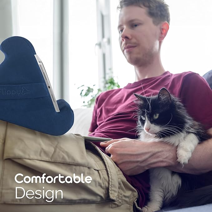 Flippy Tablet Pillow Stand - Cushion Tablet Stand & Holder, Bed Support for Lap and Desk, Compatible with Phone & Book Reading: Kindle, iPad Pro, iPhone & Samsung - True Blue