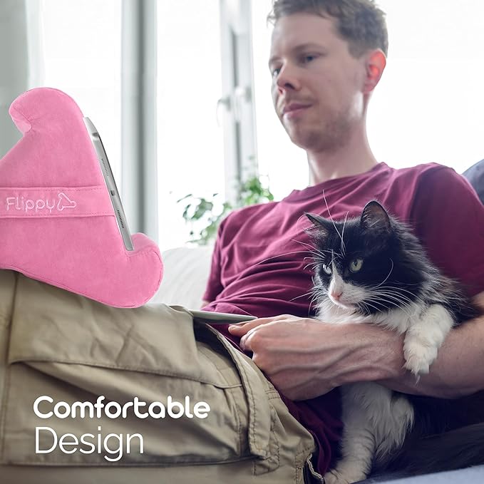 Flippy Tablet Pillow Stand - Cushion Tablet Stand & Holder, Bed Support for Lap and Desk, Compatible with Phone & Book Reading: Kindle, iPad Pro, iPhone & Samsung - in The Pink Baby