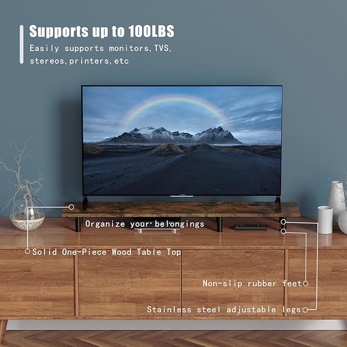 Large Dual Monitor Stand Riser 43.3IN,Vintage Home Office Storage For Desk Accessories,Solid Wod Desk With Adjustable Legs For computer/PC/Laptop/Printer/Container/dressing table
