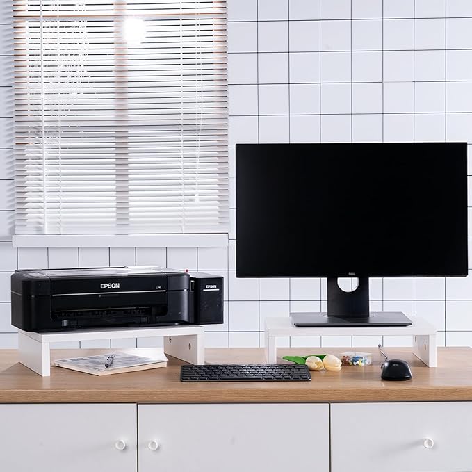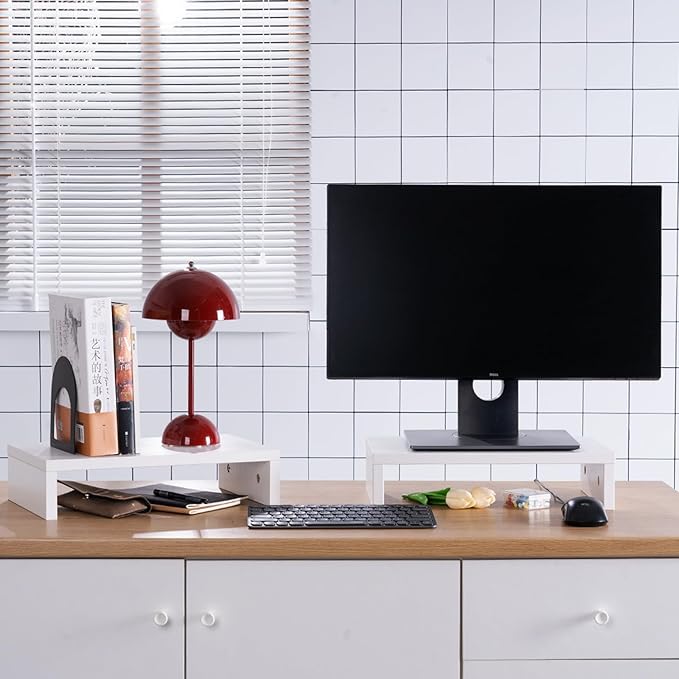 - Storage - Experience the practicality of our computer monitor stand with its 2-pack design, providing ample storage space for various office supplies such as books, notebooks, headphones, power banks, papers, and more. Keep your workstation organized and clutter-free. Suitable for both desktop and laptop screens, it's an ideal choice for improving your computing experience in home study rooms, offices, living rooms, classrooms, and meeting rooms. It is also a great option for a dual monitor set.