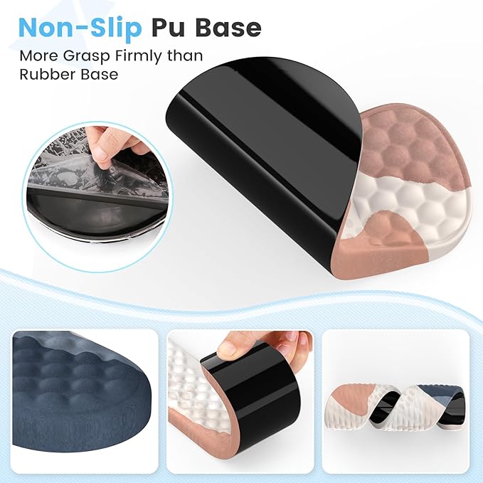 - Non-slip Pu Base: Mouse pad and keyboard wrist rest with Pu base can grasp more firmly than Rubber base. Moreover, it is hard enough to be used on the bed, couch or wherever you are working. The edges are difficult to curl even after prolonged use