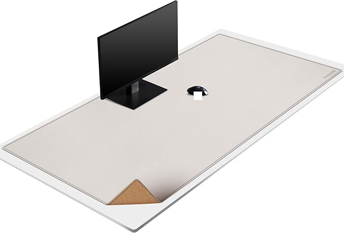 MAIDERN 59”x 27.5” Leather Desk Pad, Large Desk Mat, Cork & Leather Large Mouse pad for Desk, Waterproof Computer Desk Pad for Gaming Home Office (Cream)