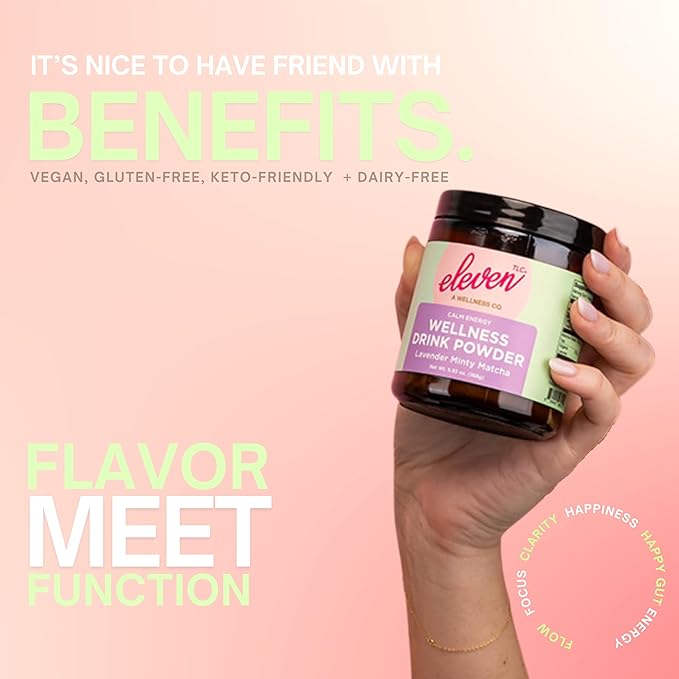 Eleven TLC Mint Matcha Powder with Lavender – Sugar-Free Japanese Green Tea for Lattes, Mocktails, Smoothies – Calm Energy, L'Theanine, Vegan, Low-Calorie, Barista-Approved Wellness Mix, Packaged Glass Jar