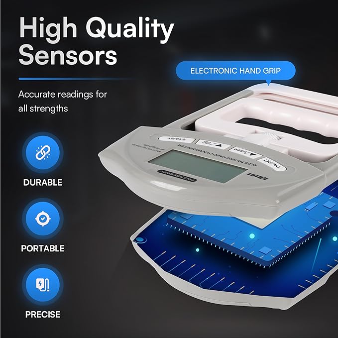 - [🎯 UNMATCHED PRECISION] - Our grip strength tester is built with high-quality sensors to deliver accurate, reliable measurements of your gripping power. Whether you’re testing your strength or refining your skills, this hand grip dynamometer ensures precision you can trust every time.