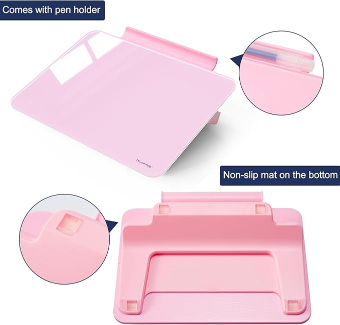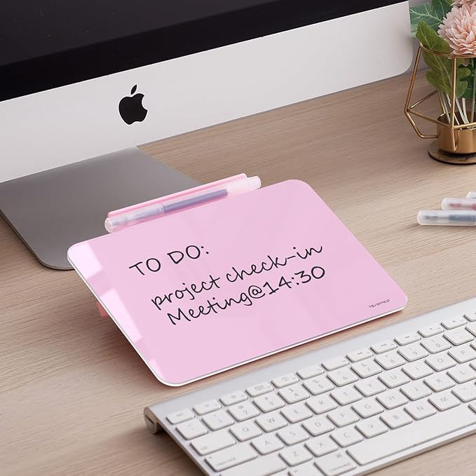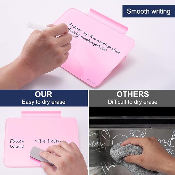 - SMOOTH WRITING & EASY TO WIPE: TSJ OFFICE mini desktop note taking pad comes with a smooth and durable temple glass dry erase writing surface. Our Boards Clean Easily With One Swipe and Resists Ghosting and Staining