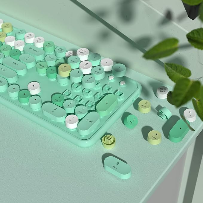 - Retro Round Keyboard:The wireless keyboard features retro typewriter-style round key-caps, 104 keys full-size with numpad, and 12 multimedia hotkeys combined with the FN key to optimize your work and study efficiency