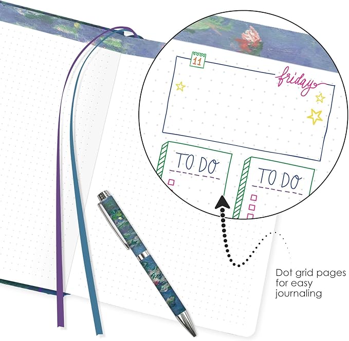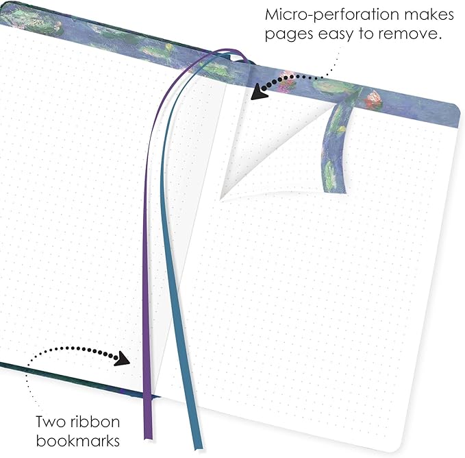 RainCaper Vegan Leather Journal Notebook, 160 Dot-Grid Pages, 5.7 inches x 8 inches, Journal - Monet Water Lilies