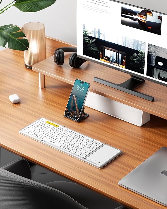 - 【Multi-touch Trackpad Foldable Keyboard】Upgraded larger sensitive touchpad supports multi-touch and mouse function, allowing you to control your device without a mouse. Built-in rechargeable battery can last up to 70 hours or standby 120 days after a 2-3 hour charge. One full charge is enough time for your short business trip or vacation! (Note: Type-C charging cable included)
