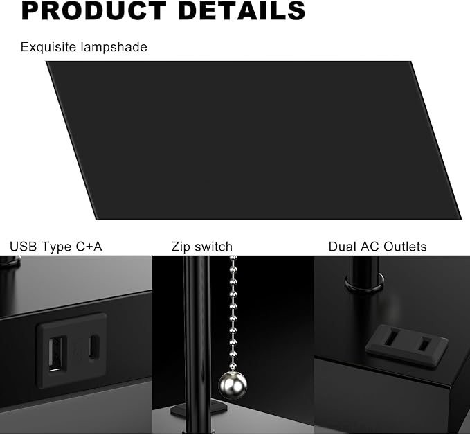 - 【USB+Type-C and AC Outlet Charging Ports】 :The bedroom lamps for nightstand set of 2 are equipped with USB port, Type-C and a 2-prong AC outlet, which can stably maintain 5V 2.1A output, make your phone, tablet, humidifier, kindle, headsets and other electronic devices are charged whether the nightstand lamps set of 2 are on or off