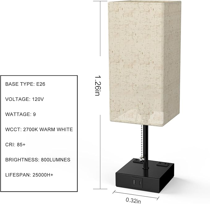 - 【Included 1 LED Bulbs】 :Nightstand lamp set of 2 come with 2 E26 Bulbs, 9W, 810 lumens. The bedroom lamp with modern fabric shade emits stable light and offers a relaxing atmosphere. Uniform distribution of eye protection LED beads, not flashing and dazzling, blocking 99.99% blue light.