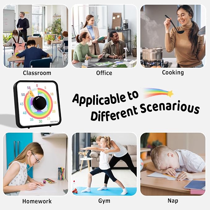 - Captivating Rainbow Design: The visually appealing rainbow pattern of this classroom timer captures all hearts, stimulating their desire to learn and helping them complete tasks on time. Perfect for both classrooms and kitchen use