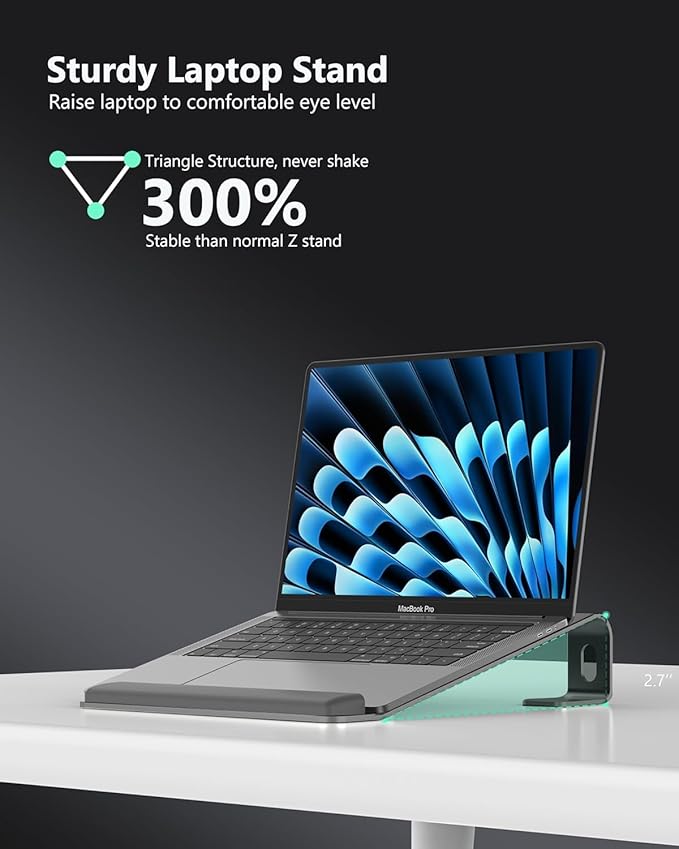 - Sturdy & Stable - This computer stand for laptop made of aviation grade aluminum alloy, Three different force points provide strong support for your laptop device, No wobble when typing, will not be rusted or corroded, working life up to 10 years, It is detachable and does not require screws, It is easy to assemble and disassemble.