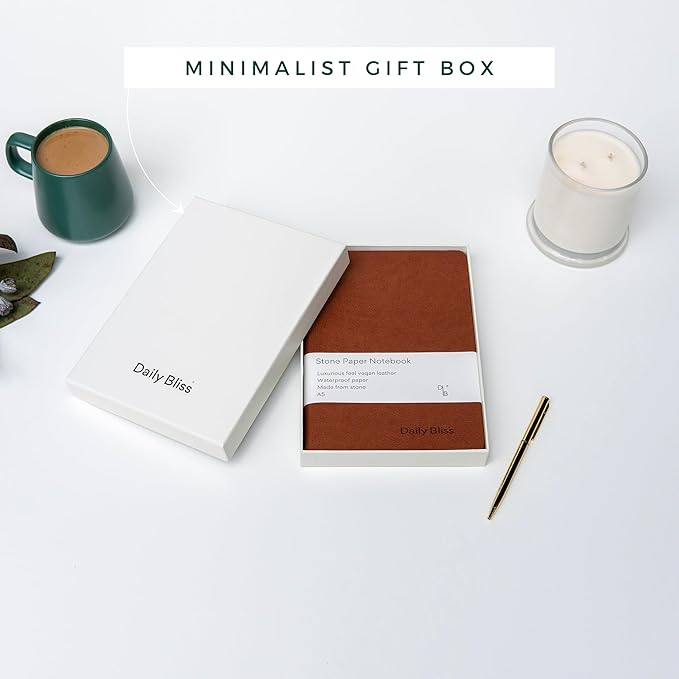 Daily Bliss Stone Paper Ruled Notebook Premium A5 Hardcover Vegan Leather Journal | 160 Pages | Premium Quality Executive Notebook For Men and Women |Comes With Gift Box Water Proof Notebook Cinnamon
